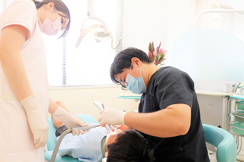 期の段階であれば、虫歯の治療は小さい範囲で済むことが可能です。痛みを強く感じた際には既に症状が大きい場合もございますので、少しでも歯がしみるな…痛いな…と違和感を感じられた方は早めに診療を受けていただきますようお願いいたします。できるだけ削らず、傷つけず、痛みが少なくなるよう処置できるよう努めます。